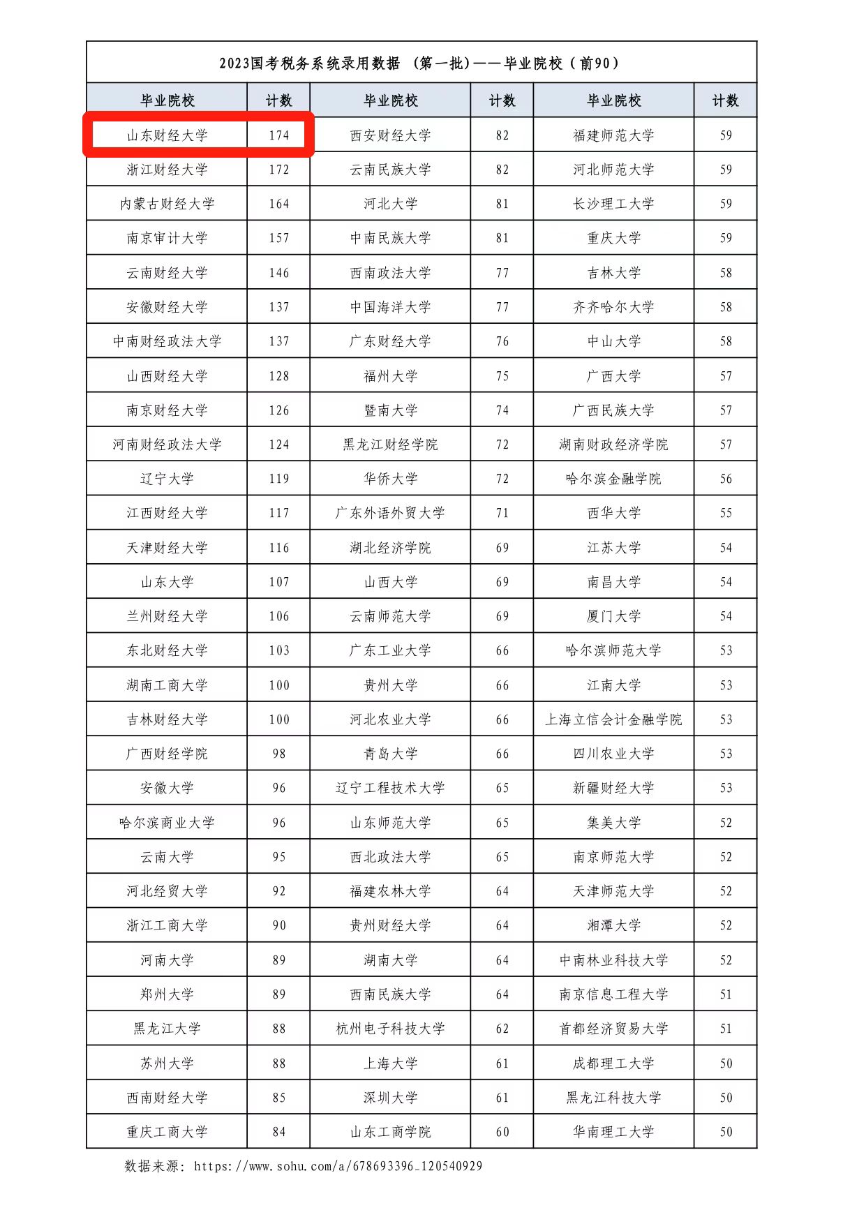在2023年国家公务员考试税务系统第一批录用名单中,全国税务系统共录用我校毕业生174人,列全国第一位。较之2022年录用我校毕业生162人,2023年录用人数持续增长,再创新高。
