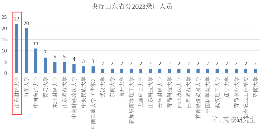 在中国人民银行山东省分行公布的2023年拟录取名单中,央行山东分行共录用我校毕业生22人,是录用人数最多的高校。