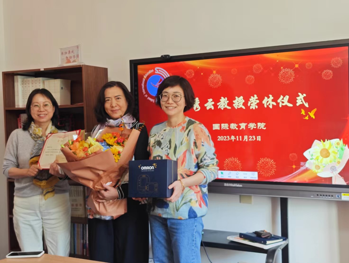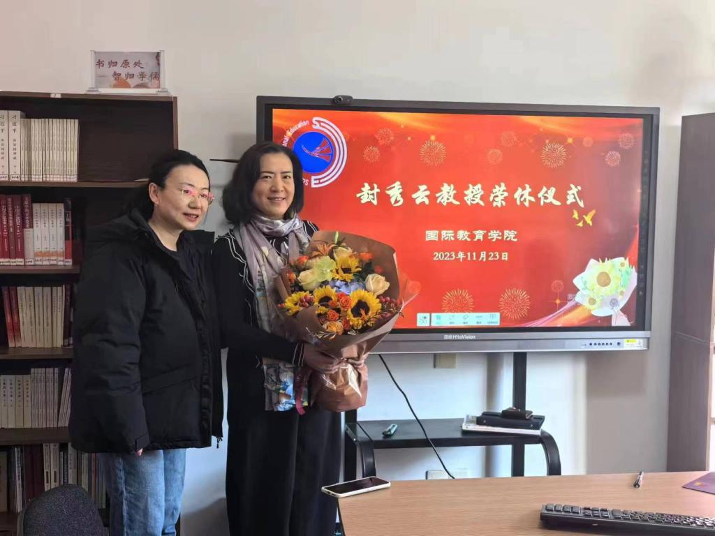 2023年11月23日下午,国际教育学院封秀云教授荣休仪式在学院会议室举行,学院领导及教师代表参加仪式。荣休仪式由学院党委书记张红燕主持。