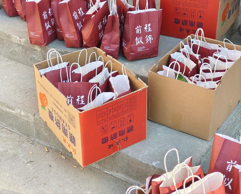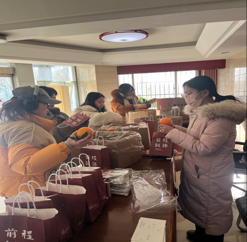 12月22日中午,国际教育学院为考研学子赠送了暖心小礼物,并致以最真挚的祝福。每位考研学子都收到了带有名字的专属加油卡片和两个橙子,装在一个印有“前程似锦”标识的袋子里。这可不是一般的橙子,这是学院老师对考研学子“心想事成”和“一举成名”的美好寓意的寄托。希望这橙子可以有特别的魔力,带领参加研究生考试的同学们成功上岸。