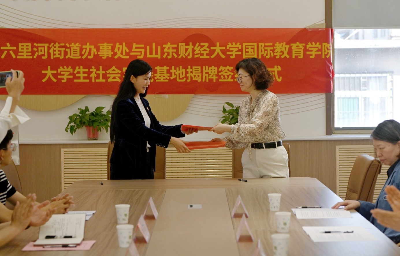 随后,双方为国际教育学院社会实践基地揭牌,国际教育学院院长齐杨与秀和社区综合党委书记李娜签订了共建合作协议。