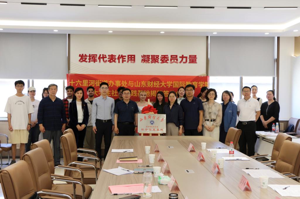 5月10日上午,十六里河街道秀和社区与国际教育学院举行大学生社会实践基地揭牌签约仪式。共青团济南市市中区委副书记王豪,山东财经大学校团委副书记谷学峰,十六里河街道党工委副书记、政法委员、总工会主席赵书广,山东财经大学国际教育学院党委书记张红燕、院长齐杨出席活动。国际教育学院师生代表、秀和社区相关领导干部等参与活动。活动由十六里河街道秀和社区综合党委书记李娜主持。