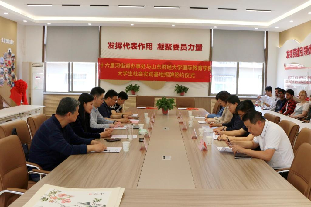 5月10日上午,山东财经大学国际教育学院与济南市十六里河街道秀和社区大学生社会实践基地揭牌签约仪式举行,并开展共建活动。