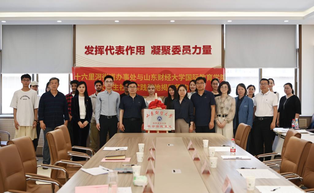 仪式上,山东财经大学国际教育学院党委书记与十六里河街道分管负责同志共同为“大学生社会实践基地”揭牌;山东财经大学国际教育学院与秀和社区签订《校社联建共建合作协议书》,两项议程的顺利完成标志着“街校社”三方正式开启共建联动新篇章。