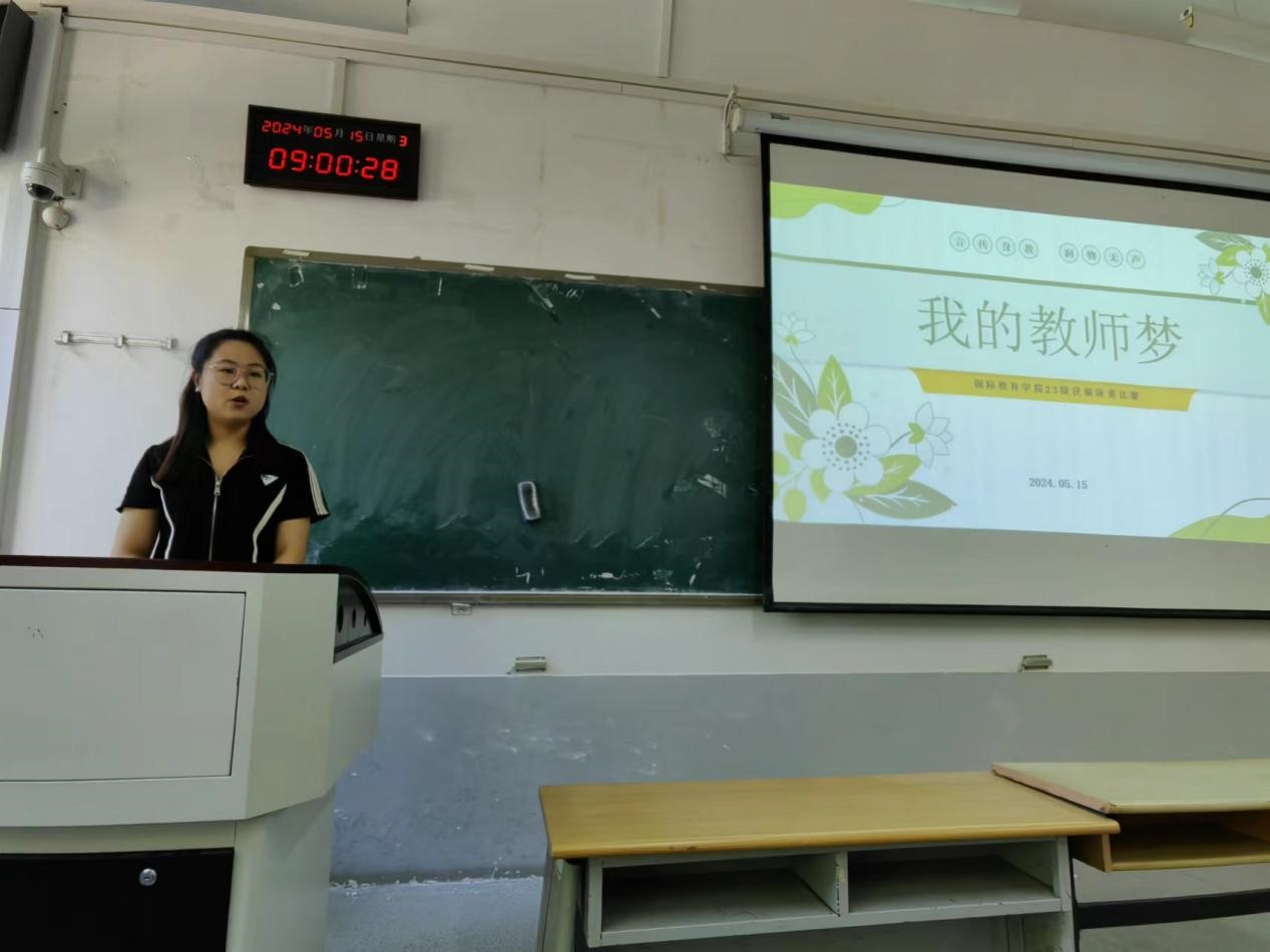 5月15日,国际教育学院2023级汉语国际教育硕士班研究生在舜耕校区1104教室以“我的教师梦”为主题举办演讲比赛。研究生辅导员赵立霞、2022级研究生王琬旖和王一担任评委。2023级研究生会主席毕慧颖担任主持。