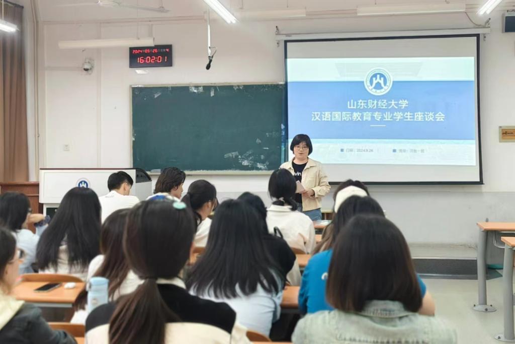 为引导2023级汉语国际教育专业本科生深化专业认识、做好学业规划,9月26日,国际教育学院在舜耕校区1106教室召开汉语国际教育专业学生座谈会。座谈会由院长助理陈华主持,汉语国际教育专业教研室主任齐瑞霞、副主任褚福侠、2023级汉语国际教育专业全体本科生参加。