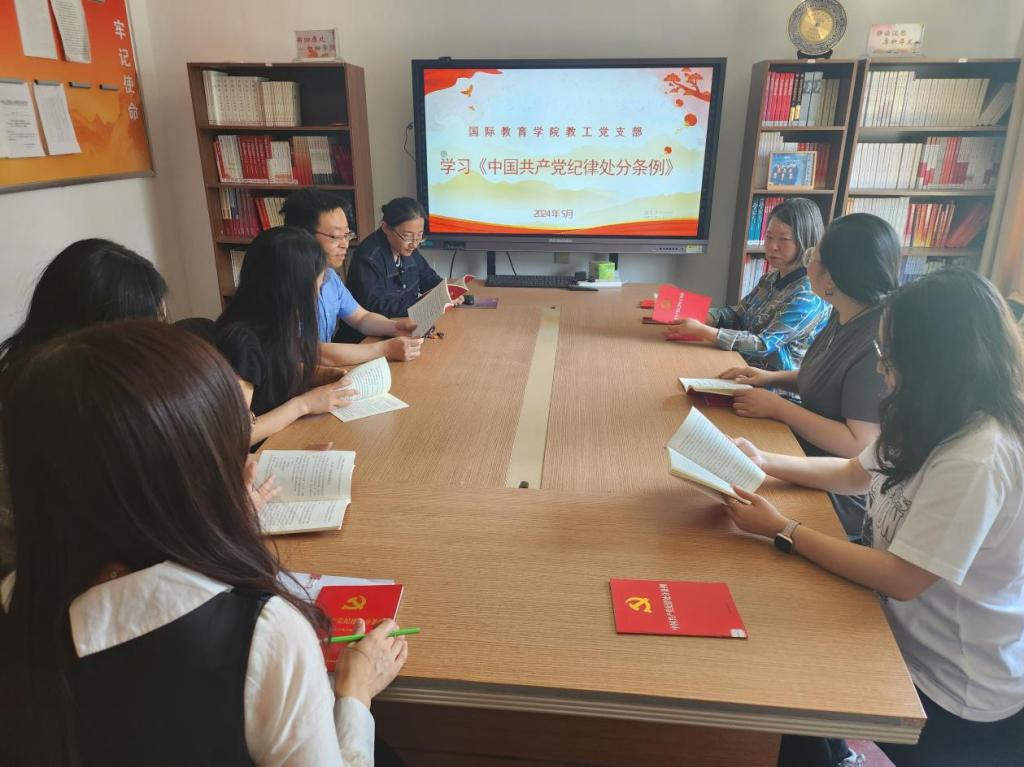 5月9日,国际教育学院教工党支部书记王英杰在学院党员活动室为支部党员带来了一场题为“学习《中国共产党纪律处分条例》”的专题党课。此次党课旨在深入解读《中国共产党纪律处分条例》,强化党员干部的纪律意识,推动全面从严治党向纵深发展。