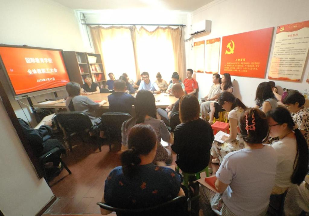 7月11日,国际教育学院在舜耕校区会议室召开全体教职工大会,学院领导班子及全体教职工参加会议,会议由学院党委书记张红燕主持。