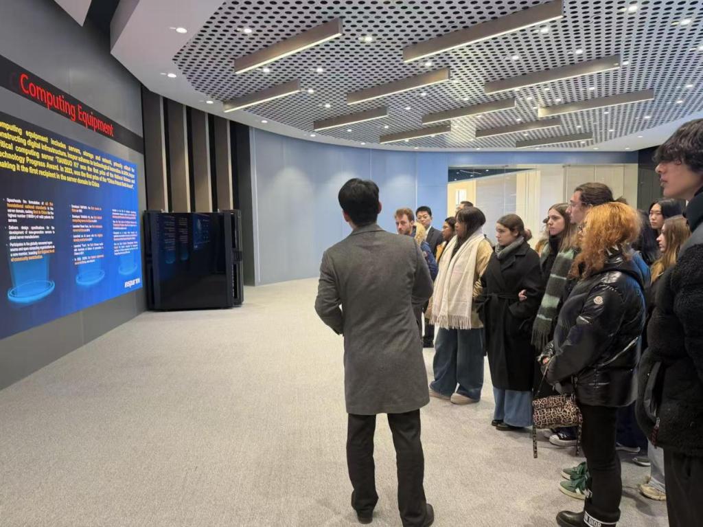 12月25日下午,山东财经大学带领参加法国高等对外贸易学院孔子学院“汉语桥”冬令营的学生们,前往济南市浪潮集团总部进行参观交流。此次活动旨在通过实地探访中国科技领军企业,增进法国青年对中国数字经济发展与企业文化的理解,进一步搭建中法青年交流的桥梁。