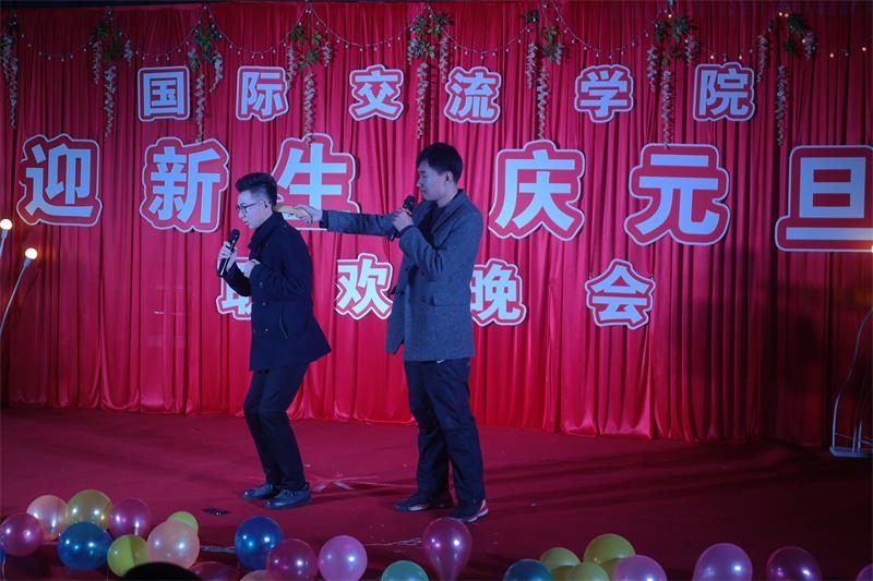 为迎接2015级新生的到来,展现我院学子的风采,2015年12月27日晚上7点,由国际交流学院(国际商学院)主办、国际交流学院(国际商学院)团委和学生会承办的以“迎新生•庆元旦”为主题的联欢晚会在舜耕校区第三食堂隆重举行。出席晚会的领导和老师:国际交流学院(国际商学院)党委书记孙玉杰、副院长丛勇、学工办主任兼团委书记王坤、团委朱维霞,晚会还特别邀请了外教老师Martin和比利时留学生梅亚华、学院历届优秀毕业生及学生会骨干代表。我院2014级、2015级全体同学参加晚会。