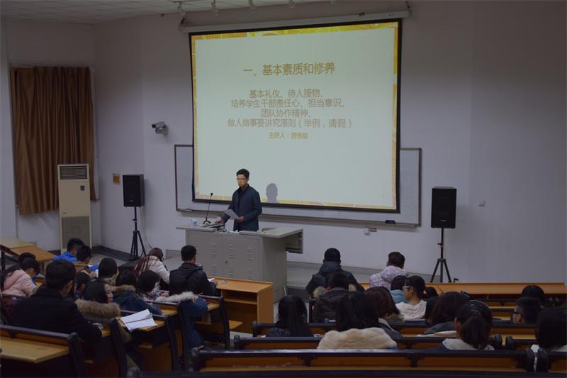 学生骨干分别利用自身的学习和工作经验对学生干部进行经验分享和交流。从学生干部的基本素养、公文写作、电脑基本操作技能、平衡和处理学习和工作的关系等方面分别进行了详细的讲解和培训。