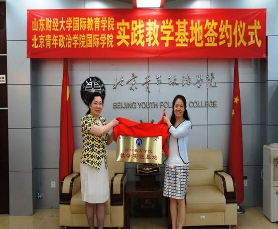 6月29日上午,国际教育学院与北京青年政治学院国际学院合作暨本科教学实践基地签约揭牌仪式在北京青年政治学院二楼会议厅举行。国际教育学院副院长孙国霞与北京青年政治学院国际学院院长姜闵虹为实践基地揭牌。国际教育学院党委副书记高峰、教研室副主任王磊等有关教师代表和北京青年政治学院国际学院主任王育珍等有关负责人参加了揭牌仪式。
