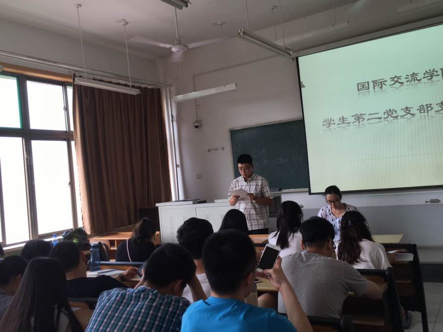 2016年6月8日中午,国际交流学院(国际商学院)学生第二党支部在舜耕校区2104教室召开了支部大会,会议主题是吸收预备党员,支部全体学生党员和本期发展对象参加。大会严格按照接受预备党员的支部大会程序进行,最后经全体正式党员无记名投票表决,一致同意接收本期5名发展对象成为中共预备党员。