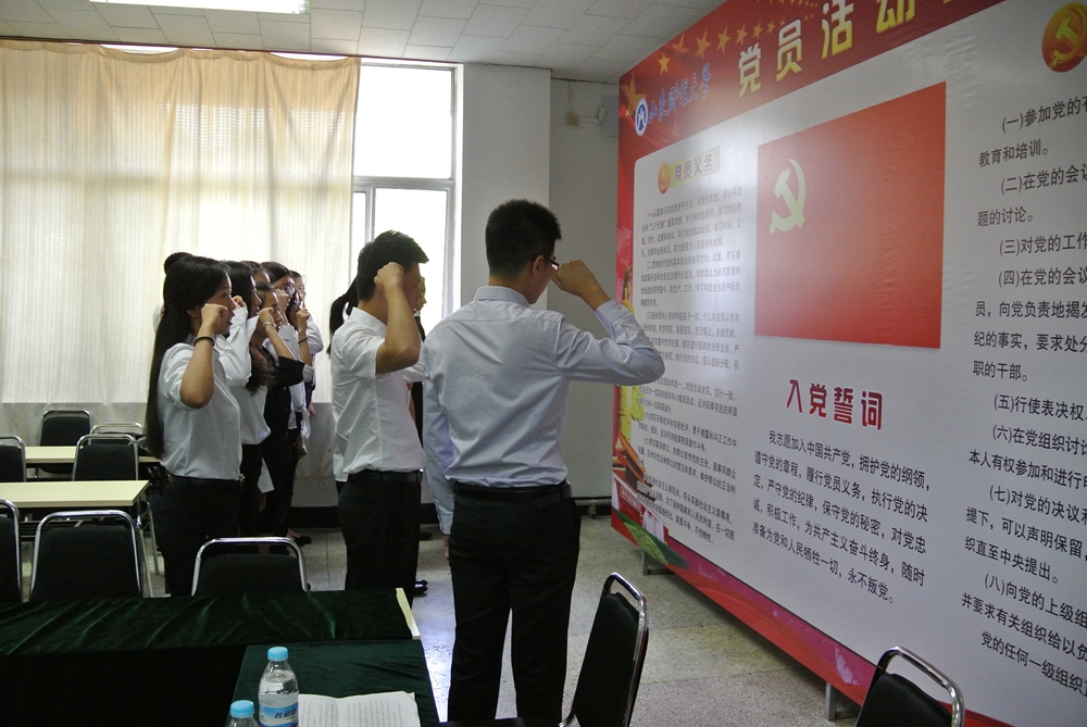 2015年7月1号国际教育学院在燕山校区4213会议室隆重举行了预备党员入党宣誓仪式。国际教育学院党委书记赵利、副书记高峰,团委老师钟毓卓、赵立霞、杨鹰,中共正式党员代表,全体预备党员及入党积极分子代表等出席了本次会议。仪式由高峰主持。