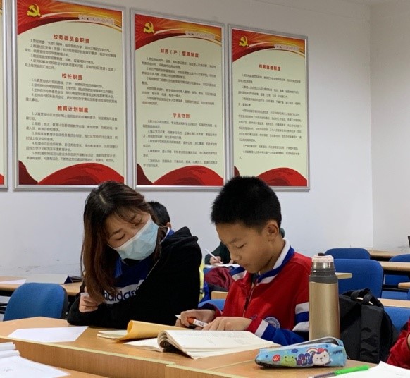 在“用爱注满橙色青春”——舜玉社区环卫工子女一对一志愿辅导活动中,志愿者们采用线上线下相结合的方式,以舜玉社区活动室为线下志愿场所,网络平台为线上沟通桥梁,以周六上午为固定活动时间,每周进行20人次,人均2小时的学习辅导,辅导范围广泛,既包括小朋友作业难题,还有课外阅读、兴趣辅导,特别是注重小朋友价值观的养成,将“立德树人,青协筑梦”的社训贯穿在与小朋友相处之中。