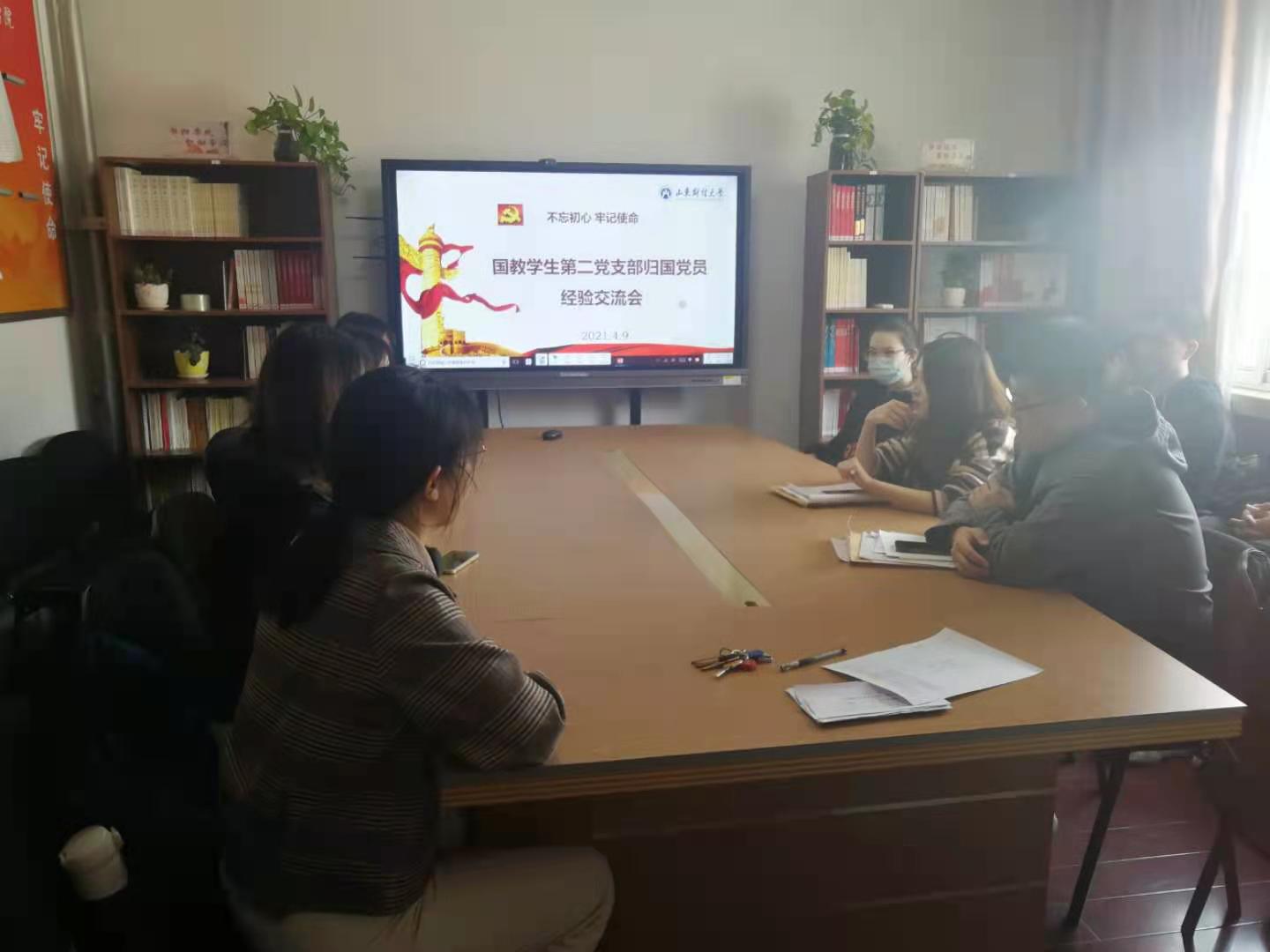 4月9日下午1点,国教学生第二党支部在舜耕校区9402举行了归国党员经验交流会,党支部书记朱维霞、专职组织员赵立霞及支部全体员员出席参加会议。
