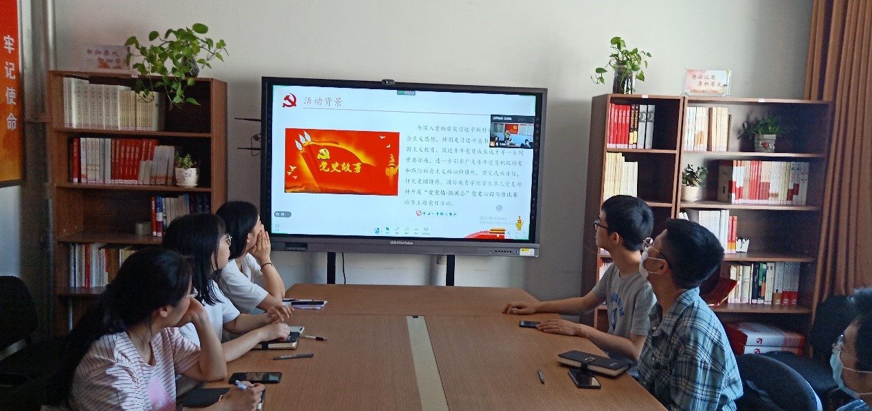 为深入贯彻落实习近平新时代中国特色社会主义思想,特别是习近平总书记关于加强爱国主义教育、促进青年党员成长成才等一系列重要论述,进一步引导广大青年党员积极培育和践行社会主义核心价值观,坚定民族自信,抒发爱国情感,5月28日,国教学生第三党支部于干训楼9402开展“爱党情·强国志”党史心得写作比赛动员主题党日活动,活动采取线上线下结合的形式,由支部副书记王奕澎主持,全体党员参加。