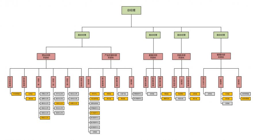 一般人员→主管→主任(分公司经理)→副部长→部长→副本部长→本部长→副总经理