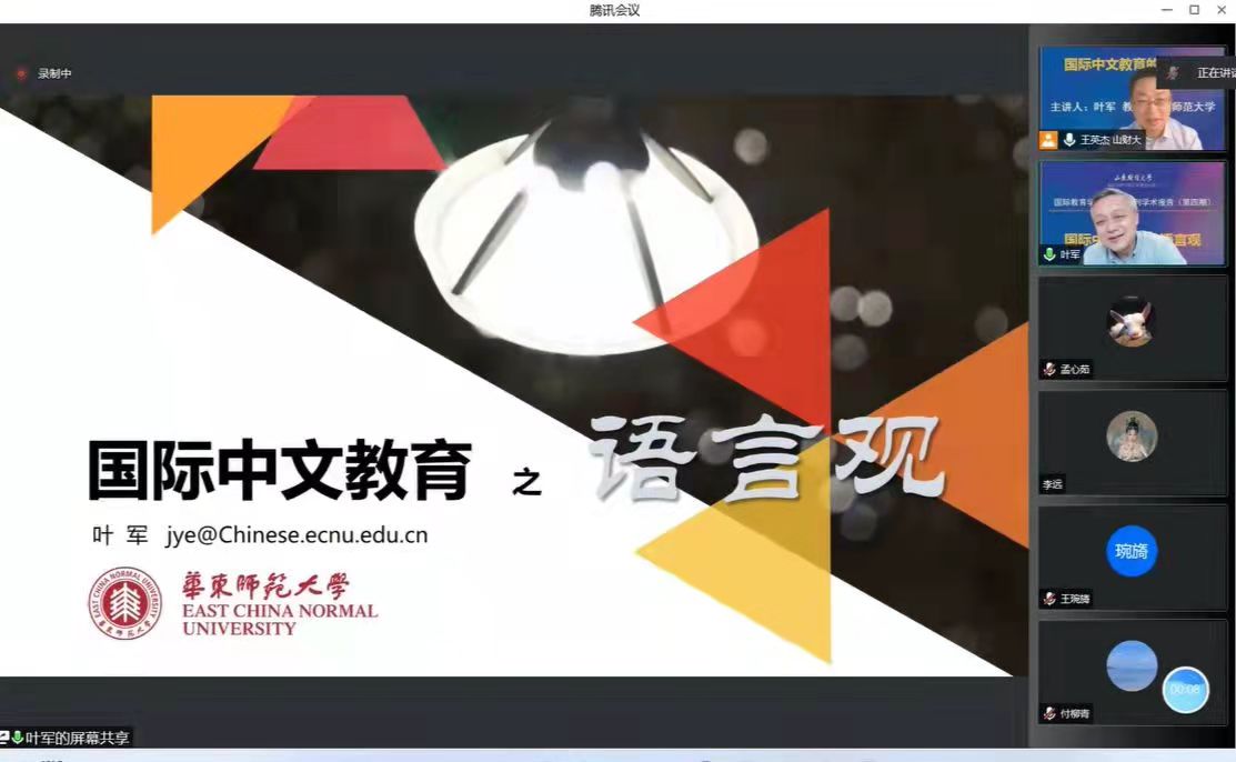 6月15日,我校70周年校庆之际,华东师范大学国际汉语文化学院叶军教授应邀为我院师生作“国际中文教育的语言观”线上讲座。讲座由国际教育学院院长助理王英杰主持,学院一线教师及汉语国际教育硕士生参加了本次讲座。