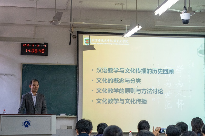 12月12日下午2:00,北京师范大学汉语文化学院王学松教授应邀做客我院,在舜耕校区1307教室做了题为“汉语国际教育视角下的中华文化教学与传播”主题讲座。讲座由院长刘增美主持,学院专业教师及汉语国际教育硕士研究生、本科生等参加了本次讲座。此讲座系我院师资培训讲座系列之七。