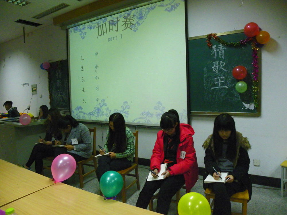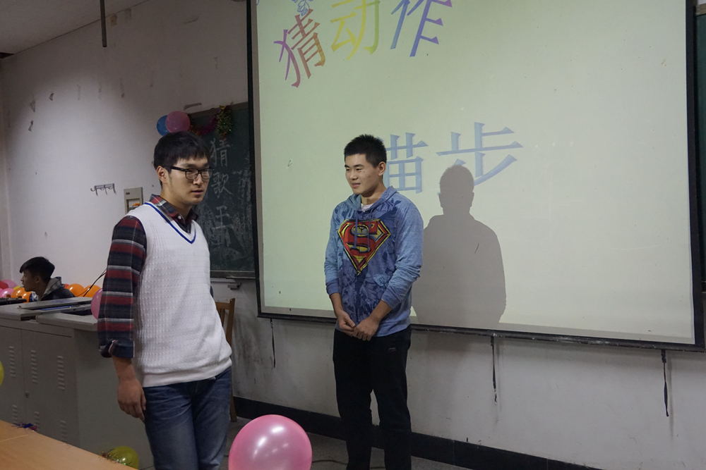 11月17日晚六点半,由我院学生会女生部与宣传部联合举办的“猜歌王”活动在2110教室开展。学生会主席肖铭鑫,副主席刘雨,秘书长杨昊睿及各部部长出席本次活动,活动由刘子健和孔雅欣主持,我院大一大二学生参加本次比赛。