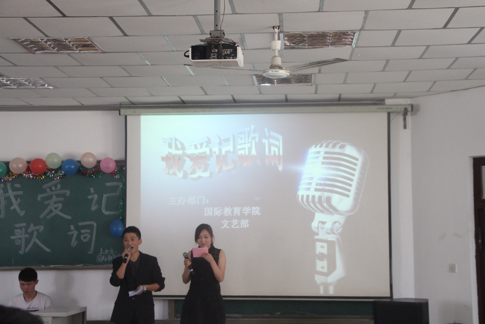 5月18日下午2:00,由山东财经大学国际教育学院文艺部主办的“我爱记歌词”大赛在山东财经大学燕山校区S2101教室圆满举行。参加本次大赛的嘉宾有大学生艺术团团长张骞,校学生会文体部负责人王雪娇,大学生艺术团办公室主任张颖,艺术学院李思儒,国际教育学院学生会副主席戴岐、秘书长赵文琦、副秘书长曾帅、女生部部长王一娜。比赛由国际教育学院、经济学院、金融学院、保险学院、管理科学与工程学院、艺术学院、国际交流学院等7支参赛队伍组成,赵文琦、戴岐担任领唱。