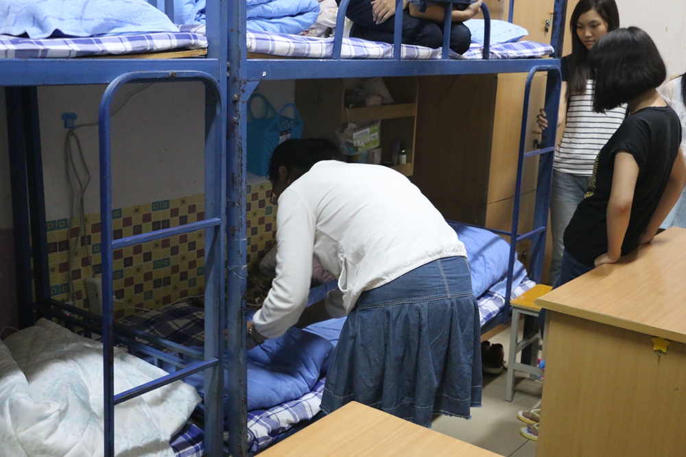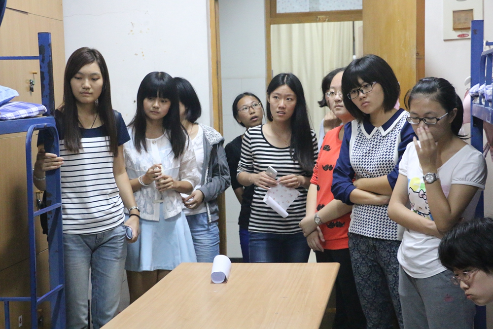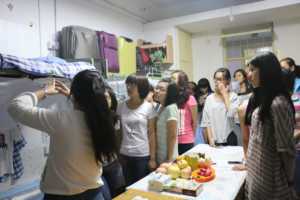 建设大学生寝室文明,营造良好的寝室文化,无疑是美好大学生活的开始。为了让新生们更快融入大学生活,生活部和卫生部的成员走访了2014级各班宿舍,仔细观察各宿舍的卫生情况,与大一新生进行深入交流,重点对同学们进行宿舍卫生指导,详细介绍并示范如何摆放物品、整理被褥、清洁地面,并整理出样板宿舍供新生学习和参考。