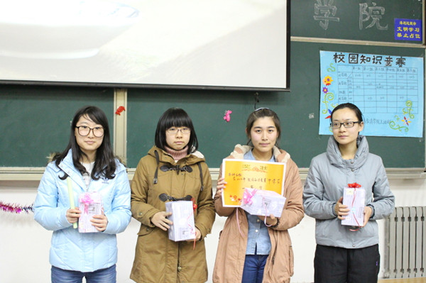 经过激烈的比赛,结果终于揭晓,获得本次比赛冠军的是中新会计本科五班,第二名中新会计专科一班,第三名对外汉语1301班,中新会计本科一班获得最佳团队奖,中新本科三班获得最佳人气奖,艺术学院代表队获得最具风采奖。至此,我院校园知识竞赛圆满结束。