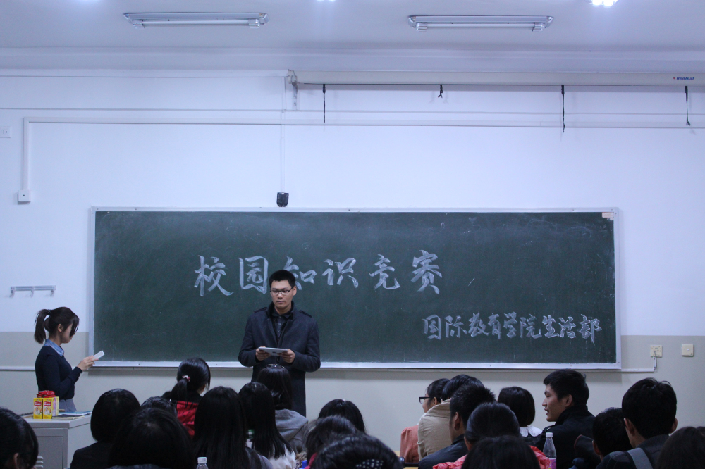为了丰富同学们的生活知识,提高同学们的生活情操,建设校园文化生活,11月14日晚6:30,我院生活部于1207、1209教室举办校园知识竞赛初赛,中新合作会计本科班、专科班,汉语国际教育班共计9个班的选手参赛。