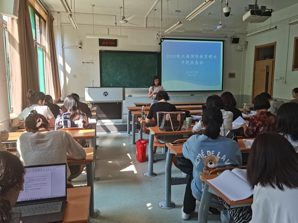 2021年9月16日,国际教育学院2020级汉语国际教育硕士学位论文开题报告会在舜耕校区1203教室举行。山东师范大学国际教育学院副院长、硕士生导师王其和教授,我院全体硕士生导师以及13名2020级汉语国际教育硕士生参加了此次开题报告会。2021级汉语国际教育硕士生旁听观摩。报告会由院长助理王英杰主持。