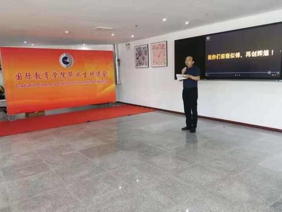 6月18日—毕业生离校的日子,同学们即将告别母校,开启人生新的旅程。为了表达对毕业生的祝福和惜别之情,培养学生的社会责任感和感恩情怀,学院用自己的方式为他们庆祝毕业、与他们分手告别,特别为他们精心准备了毕业典礼暨欢送会,于当天下午在舜耕校区国际学生楼一楼顺利举办。参加的领导和老师有国际教育学院院长刘增美、党委书记张建、院长助理陈华以及三位辅导员老师。典礼由张建书记主持。全体本科和研究生毕业生一起共度美好时光,享受学院为他们精心准备了欢送文艺节目、美食,以及真诚的、深深的祝愿,为他们踏上了未来征程增添了力量和勇气,燃气了希望之火。