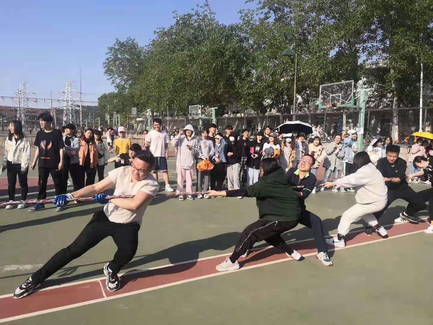 2021年4月28日我院于舜耕校区操场举办国际教育学院第一届中外学生趣味运动会,运动会包含50米篮球运球跑、定点投篮等个人项目,以及集体项目拔河。