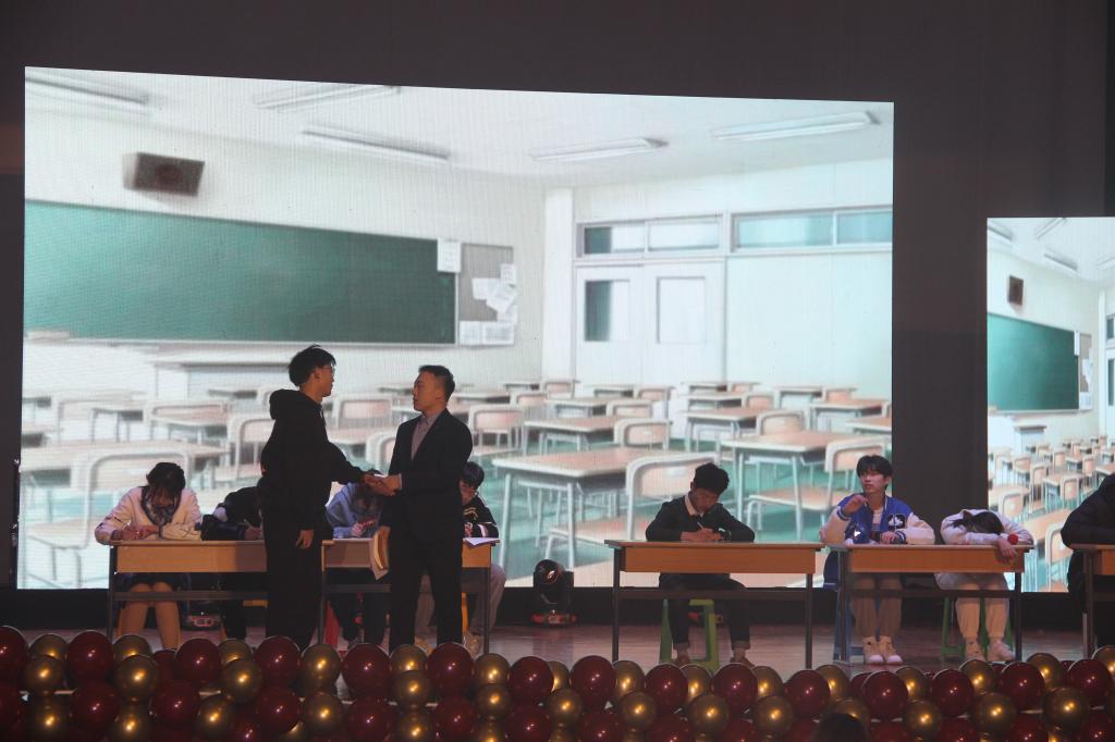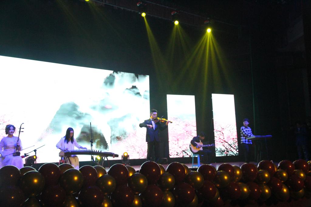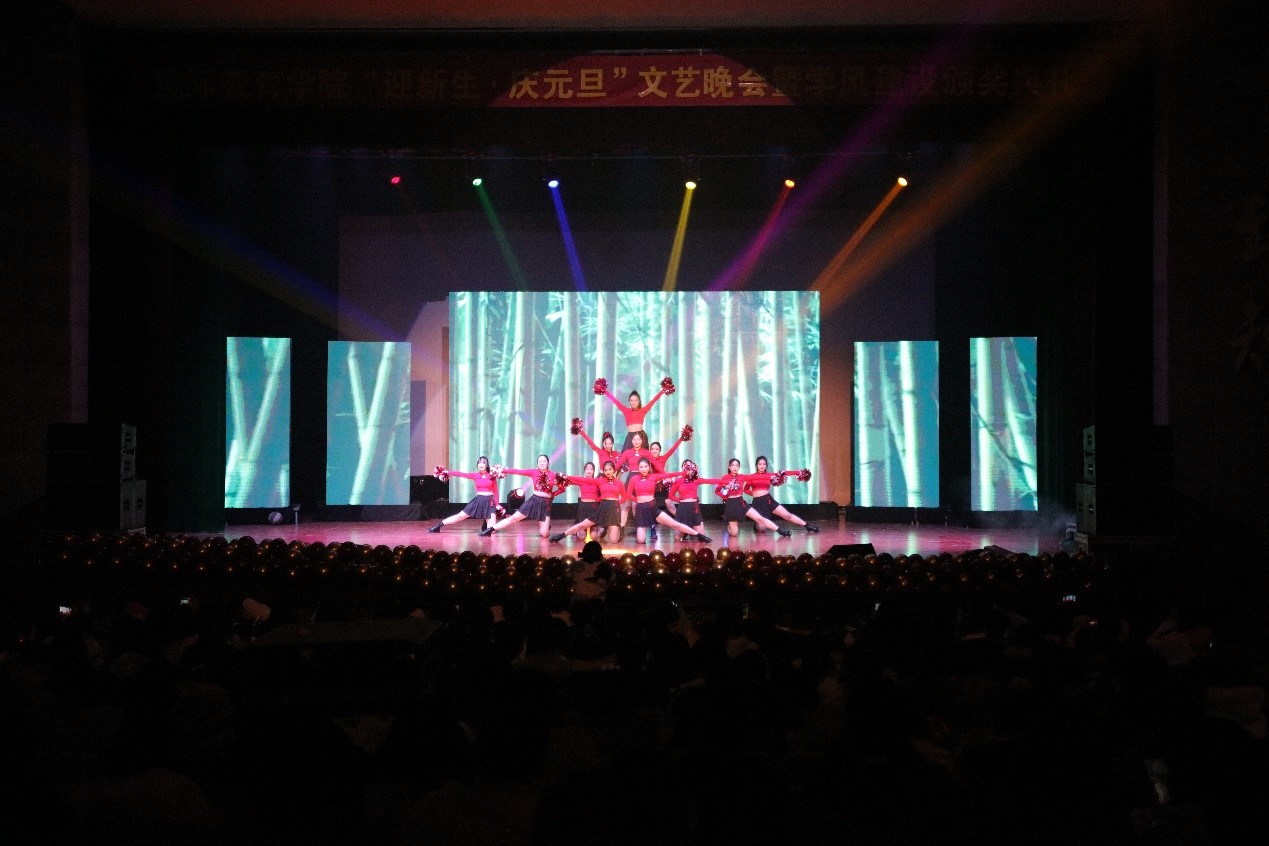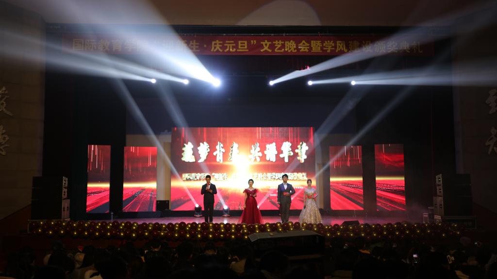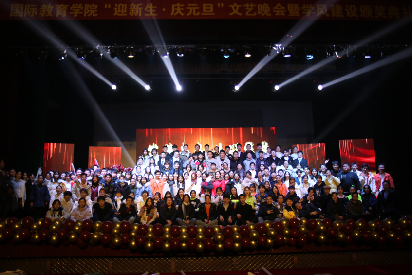 12月24日下午七点,国际教育学院在舜耕校区礼堂举办了以“筑梦青春,共谱华章”为主题的“迎新生•庆元旦”文艺晚会暨学风建设颁奖典礼。校就业指导处处长杨哲、校学生工作处副处长孙丽华、校团委副书记孙亚男、国际教育学院院长刘增美、党委书记张建、副院长孙国霞、副院长从勇、党委副书记于栋、留学生办公室副主任王征、院长助理陈华、部分专业教师和三位辅导员以及全体同学共同观看演出。