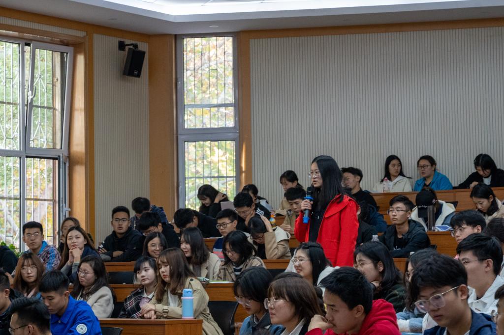 韩淼旭结合自己的留学经历,对生活经验等方面进行了交流和分享,她提醒同学们只有学好在校课程的前提下才有能力兼顾更多选择和机会。她希望同学们不要惧怕选择,勇于面对挑战。她建议有出国意向同学要自觉提高语言能力,为将来到国外学习奠定一个良好的基础。