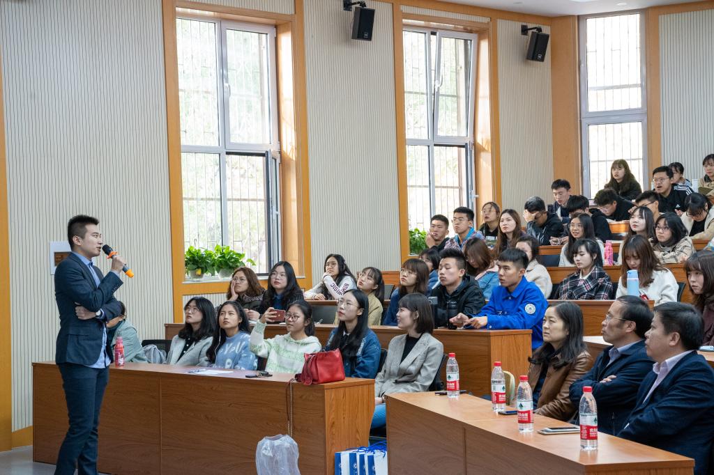 曲逸飞结合自身工作经历给同学们提出了几点建议,在大学期间,要耐得住寂寞,经得住诱惑,守得住繁华,才会赢得成功。对于出国留学,要提前并且合理规划,对自己的发展方向有个清晰的定位。并对辅修专业做出了详细分析,鼓励学弟学妹要有持之以恒的精神才能完成目标。