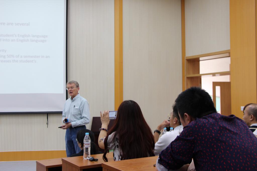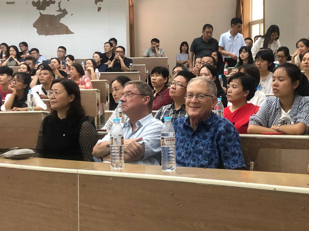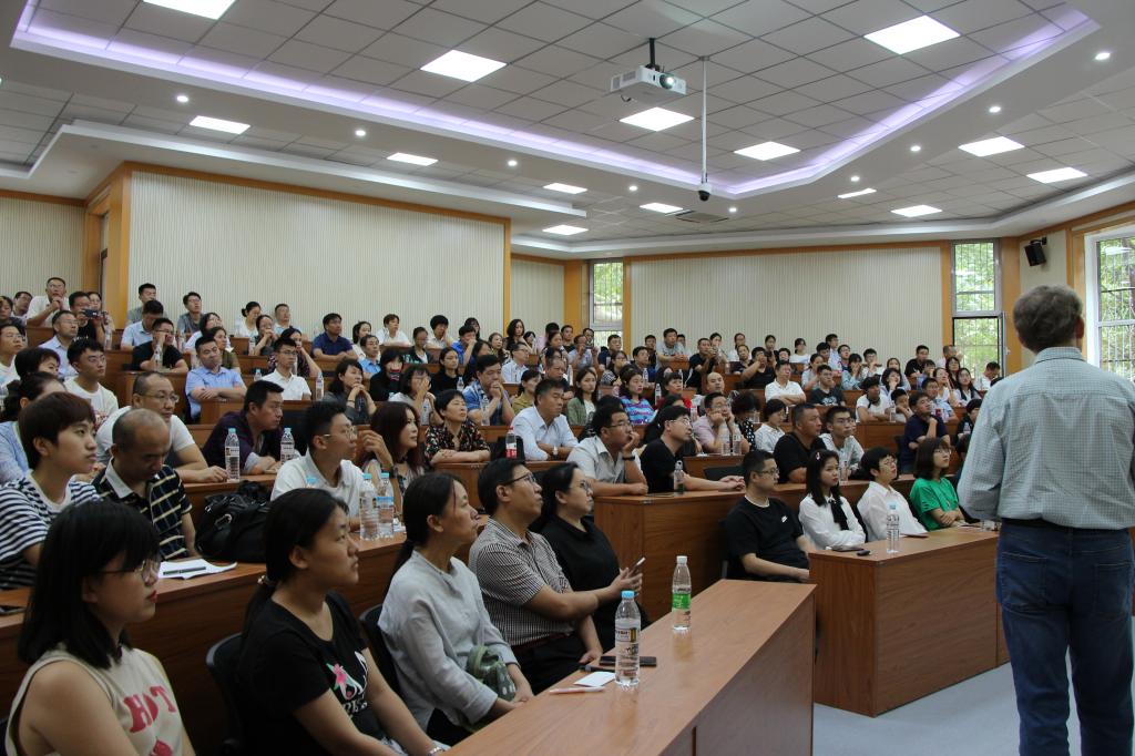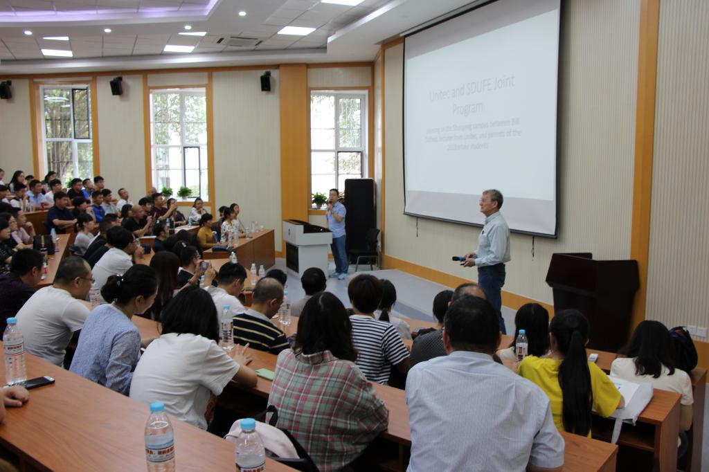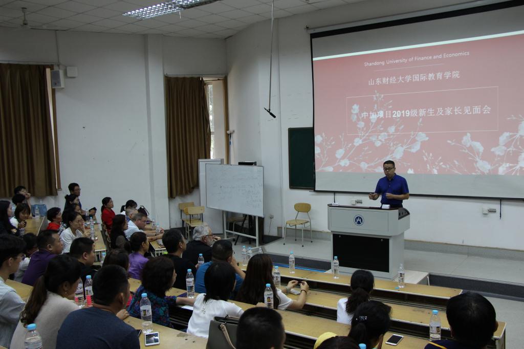为使2019级新生与家长更好地了解中外合作办学项目特点和要求,帮助同学们做好学业规划,9月15日下午,国际教育学院在舜耕校区第二阶梯教室、第三阶梯教室举办中外合作办学项目新生及家长见面会。学院党委书记张建、院长助理王英杰和中新项目外方课程协调人Bill老师出席中新项目见面会,院长刘增美、副书记于栋、中加项目外方管理人员Barry Lesser教授及在校任教的两名外方教授出席了中加项目见面会。