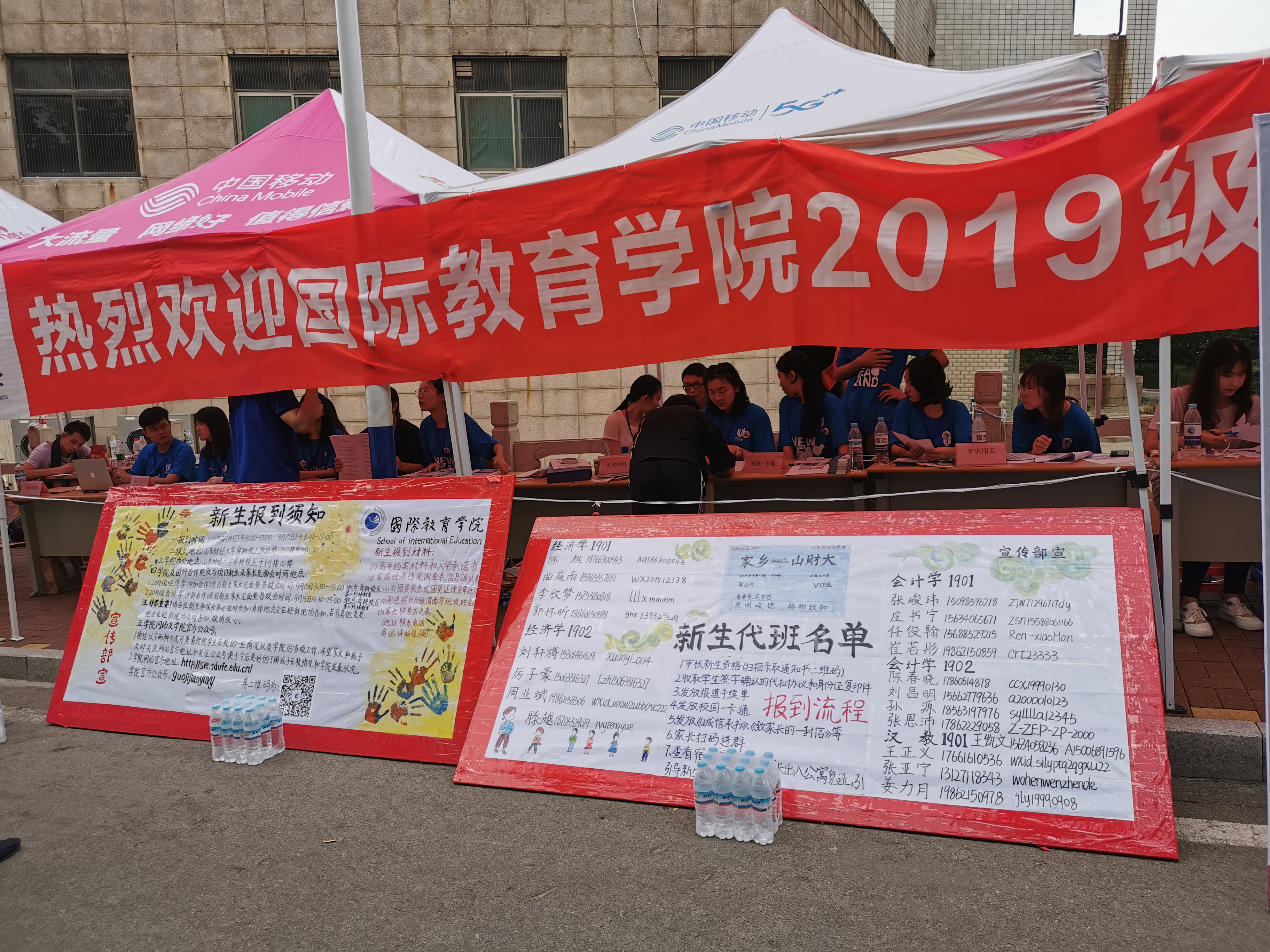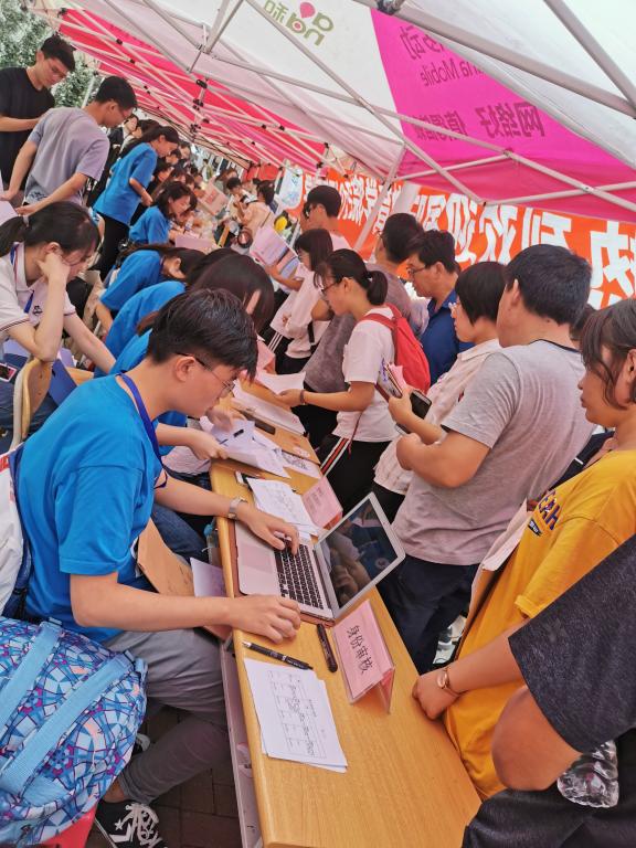 14日至15日,学院在舜耕校区办公楼南侧致远路设立“国际教育学院”报到点进行迎新。在总结往年迎新工作经验的基础上,今年的迎新工作进行了相应的调整,使新生报道更加顺畅高效。迎新志愿者分成三组,一组负责引导学生及家长到达宿舍等地点,一组负责接待讲解具体的报到流程、介绍学校的大致情况,一组负责学生报到表的填写及收集。