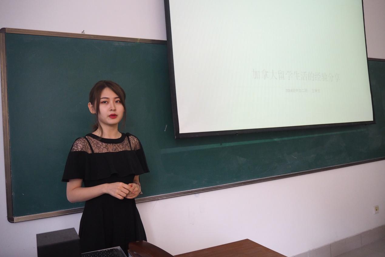 2014级学成归国的优秀学生代表王学文,成功申请到世界名校伦敦大学国王学院读研。她结合自身的情况与即将出国学习的学子分享了国外学习、生活、申研等各方面的经验。从衣食住行等生活细节,到如何选课和申请研究生等重要学习事宜,事无巨细、传经送宝,给低年级学生很大的指导和帮助。2016级出国学生代表潘唯同学发言,她首先代表全体出国同学对学院的各位领导、老师以及对他们提供帮助的学长学姐表示感谢,并保证会在国外刻苦学习,塑造优秀的留学生形象,为母校和祖国争光添彩。
