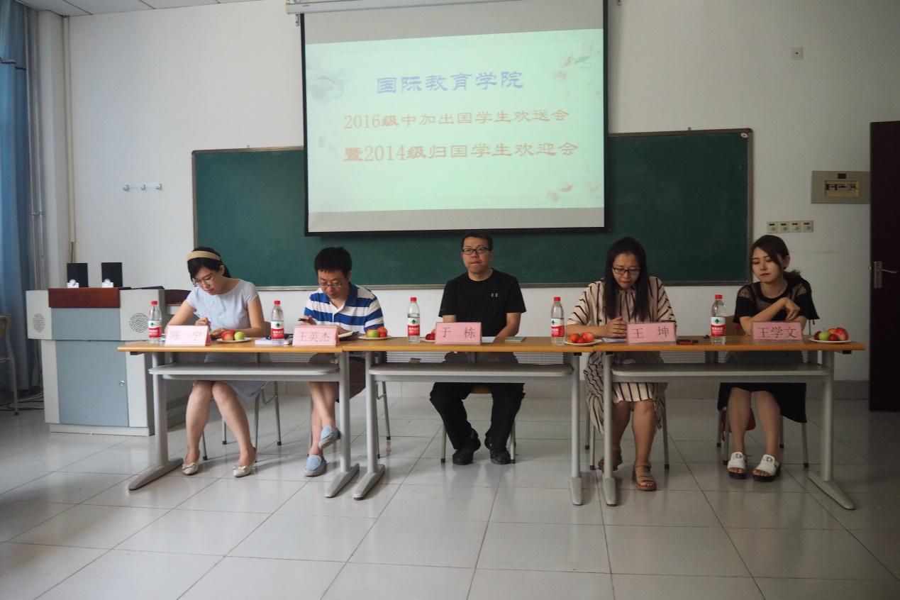 6月15日上午,我院于舜耕校区研究生楼208教室举办了国际教育学院2014级中加归国学生欢迎会暨2016级中加出国学生欢送会。参会的领导和老师有国际教育学院党委副书记于栋、院长助理王英杰、教学秘书陈宁、学工办主任兼16级中加班辅导员王坤,会上还特别邀请了2014级学成归国的优秀学生代表王学文,2016级中加出国全体学生参加欢送会。