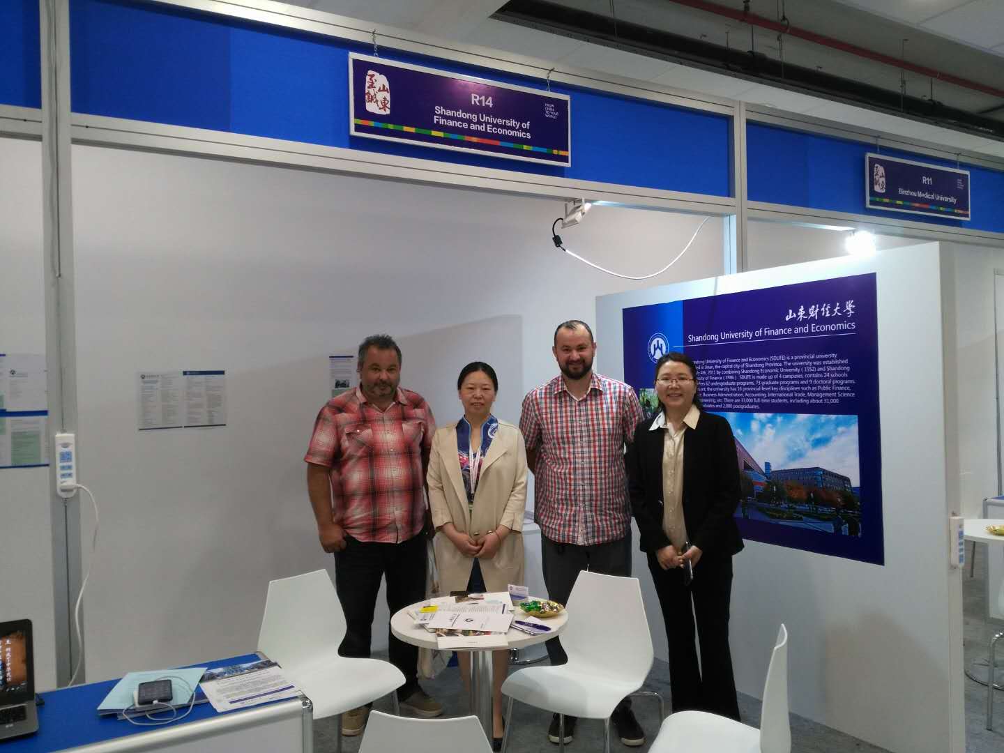 2018年5月30日---6月3日,留学生工作办公室副主任王征一行,赴匈牙利布达佩斯,参加了由山东省商务厅和教育厅共同组织的“2018山东(中东欧)国际教育展”。山东省商务厅每年组织中国(山东)品牌产品中东欧展览会,已历六届。此次展会是首次吸收高校作为服务贸易展团成员参会,意义重大,富有成效。