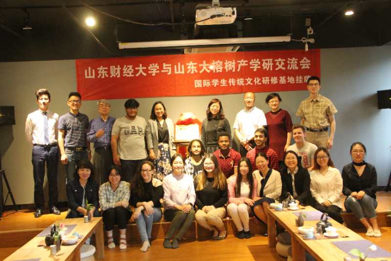 2018年5月11日下午,山东财经大学国际学生传统文化研修基地在大榕树生活美学馆顺利挂牌。国际教育学院院长兼国际学生工作办公室主任刘增美和大榕树生活美学馆总经理何琪为基地揭牌,国际教育学院副院长丛勇、留学生工作办公室副主任王征、山东新影屏传媒科技有限公司总经理刘长超、山东财经大学部分国际学生及任课教师出席了揭牌仪式。