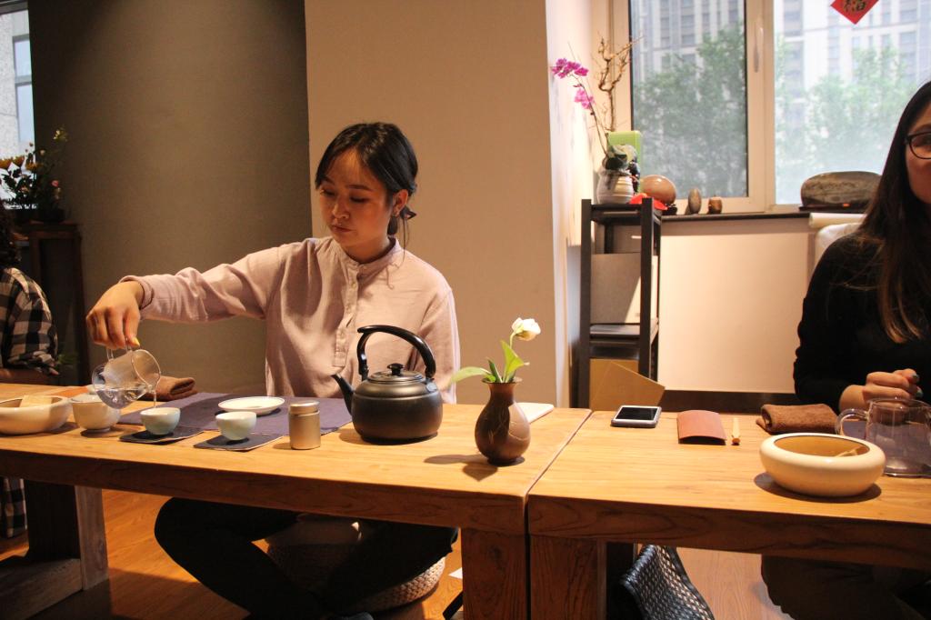 来自捷克、斯洛伐克、伊朗、哈萨克斯坦、蒙古、日本、尼日利亚等国10名国际学生在大榕树美学馆培训师带领下,体验了如何泡好一杯中国茶的活动。学生们对于行茶礼和茶具的摆放表现出极高的兴趣。茶艺老师还与国际学生们讨论国际学生所在国家的茶文化,并进行中外文化对比,使国际学生在交流中进一步感受到中国传统文化。