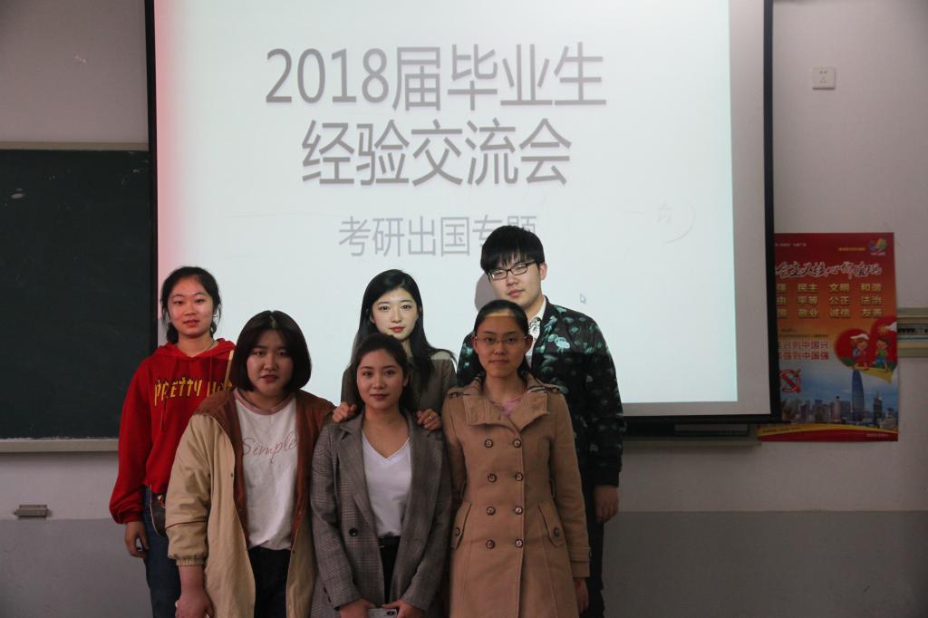 为了帮助低年级同学做好未来规划,对国内考研、出国读研等选择有明确的了解,我院于4月23日下午在舜耕校区举办了2018届毕业生经验交流会之考研出国专题。学院邀请了2014级中加经济学专业王子秦、李肖璇、孙路、吴琪、张慧、蒋立城等六位优秀毕业生进行经验交流和分享。