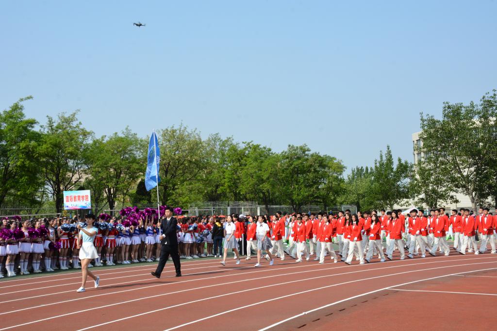 运动会开幕式上,激昂的口号响起,铿锵有力的脚步踏起,国际教育学院方队同学精神抖擞、神采飞扬,“国教国教,斗志激昂,齐心协力,共创辉煌”,高亢嘹亮的口号充分展现了我院学子的蓬勃生机与昂扬斗志;伴随着轻扬、悠缓的音乐,武术操同学手舞折扇站上了运动舞台,整齐划一的动作无不彰显着我院学生严谨的纪律与组织性;动感音乐奏起,团体操队员青春靓丽,舞动着花穗登上健身草坪,现场浮翠流丹,洋溢着当代青年学子蓬勃朝气、奋发向上的精神气质。
