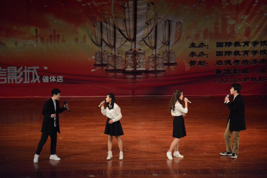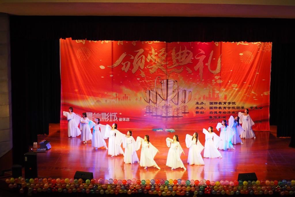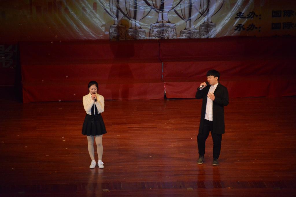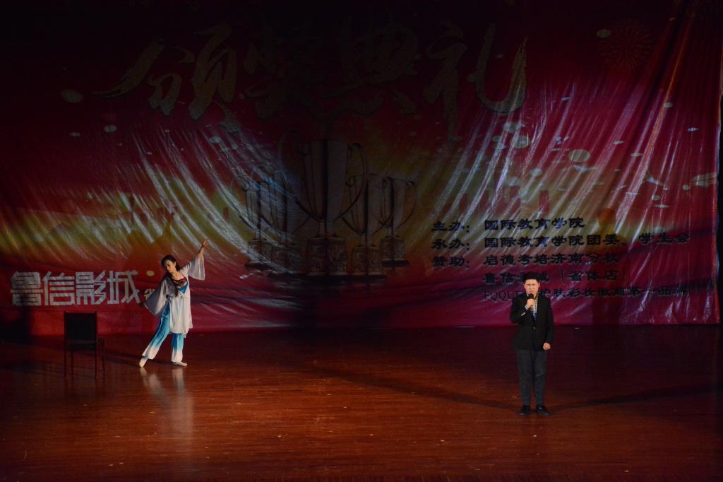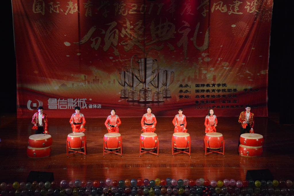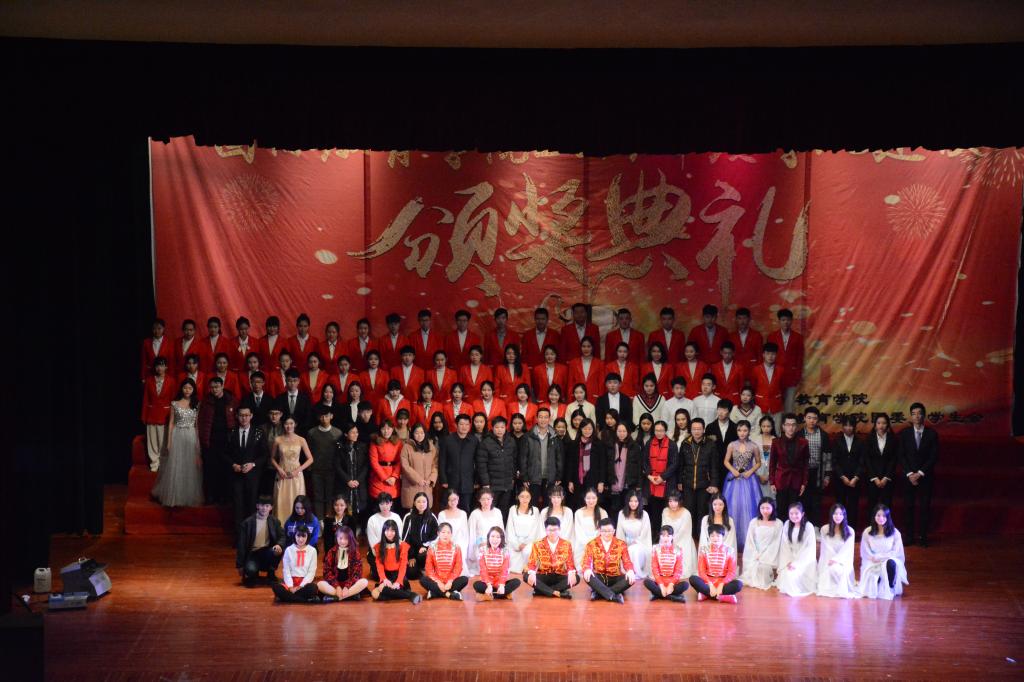 颁奖典礼过程中还精心准备了精彩的文艺节目:首先颁奖典礼在激昂的鼓声中拉开帷幕,一曲《鼓舞盛世》,奏出了国教学子的磅礴气势,展现了国教学子奋发向上的精神风貌;歌曲《旗开得胜》应时应景,祝福学院师生在新的一年里旗开得胜,马到成功;话剧《考试众生相》作为我院在学风建设方面的品牌活动,直指大学生考试作弊问题,警戒同学们要好好学习,诚信考试,切莫因小失大;民族舞《扇舞丹青》极具古韵,众位舞者白衣翩翩,仙气十足,尽展国风之美;男女对唱《芬芳一生》悠扬动听,低吟浅唱诉尽情怀;辩论表演赛《如果我们变成了自己讨厌的样子这是一件坏事吗》不仅幽默风趣、妙语连珠,更引发了同学们对人生的思考;歌舞《父亲写的散文诗》表达了感恩之情,感人至深;由STDC舞社和第舞季联合带来的舞蹈串烧更是将典礼推上了高潮;2014级中加班毕业生的倾情演唱,表达了对学校和学院深深的祝福。欢乐的时光总是匆匆而过,颁奖典礼在大合唱《爱因为在心中》的歌声中落下帷幕,而我们的2018,还刚刚开始。典礼期间还设置了抽奖环节,为同学们准备了精美礼品,烘托了现场氛围,实现了全员参与、师生互动,整场典礼满载欢歌笑语。