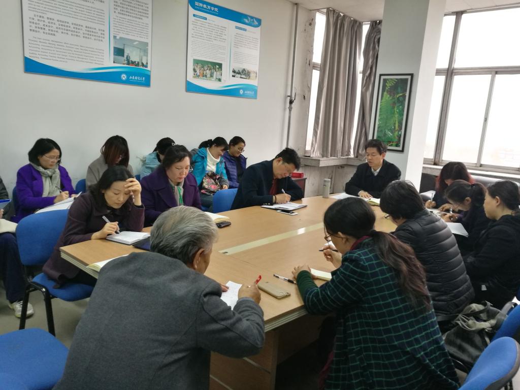 11月16日下午,山东财经大学国际教育学院党委书记赵利,在学院会议室4605,向全体教职工宣讲党的十九大精神,与教职工们交流学习十九大精神的心得体会。他强调,要深入学习贯彻党的十九大精神,用习近平新时代中国特色社会主义思想武装头脑,脚踏实地、奋发进取,结合自己的工作实际,要在做实上找准落点,真抓实干。要立足实际,积极实践,确保党的十九大重大部署在我院真正落地。