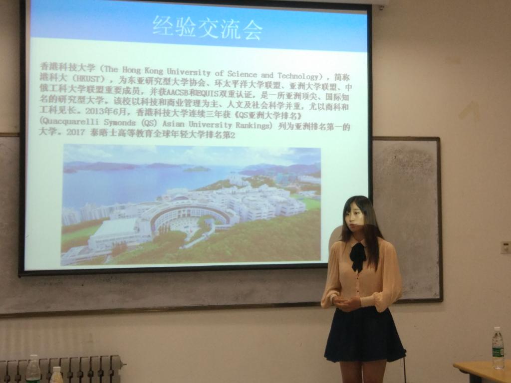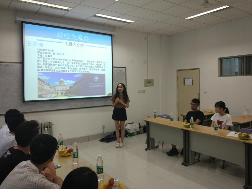 其后,分别考取了爱丁堡大学、英属哥伦比亚大学、美国南加州大学、香港科技大学等世界顶尖高校继续攻读研究生的2013届优秀毕业生王冬梅、丁梦觉、张文浩、任思贞、岳怡君等五位同学做了精彩的报告,传授他们在国外的学习和生活经验。五位同学从学会独立做饭做菜、出去旅游等生活琐事,到如何选课和申请研究生等重要学习事宜,事无巨细、倾囊传授,给正要准备走出国门读书的2015届学生以很大的帮助和启迪。2015级的初瞳同学代表出国学生发言,对学校老师和高年级学生表示诚挚的感谢,表示会以这些优秀毕业生为榜样,在国外好好读书,为母校争光,为祖国添彩。