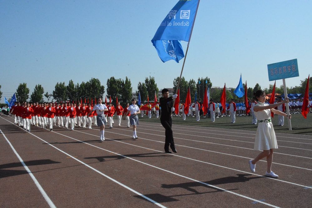 为了展现我院学生积极向上、青春洋溢的精神风貌,运动会前期,学院团委积极筹备、精心组织,学生会学生骨干及各级同学更是积极配合、认真执行,啦啦队、方队刻苦训练。运动会当天,院团委老师和学生凌晨四点就开始准备各项工作,搬运物品,联系车辆和接应,不到七点所有学生就抵达明水校区,开始布置会场,搬运桌椅。运动会现场上国教方队的整齐划一,啦啦队的青春靓丽,青鸟影视协会记者们的忙碌采访,运动员的拼搏与奋斗,这些都充分说明了我们的国教学子用实际行动展现出我们吃苦耐劳、坚韧不拔的国教精神!另外,在女子跳高比赛中,我院16级中加经济学李忻潞同学飞越极限,取得了全校第二名的好成绩,实现了该项目历史性的突破。