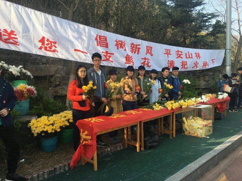 为全面提高市民森林防火意识,切实做好2017年清明节期间山林防火宣传工作,由济南园林系统团员青年联合山东财经大学、山东大学、济南大学共同参与的“送您一枝鲜花,请把火种留下”山林防火宣传活动,于4月2日在旅游路千佛山南门东200米羊头峪长生林顺利启动。我院学生积极报名参与,来自大一到大三的20名志愿者利用假期时间积极参与了本次志愿者活动。