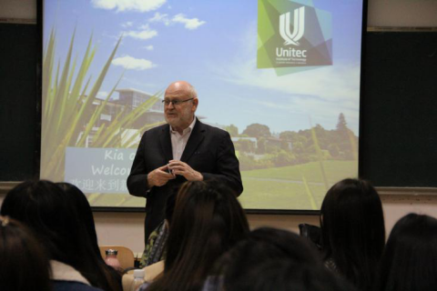 3月28日上午,新西兰国立理工学院国际关系部主管David Nummy、会计学专业资深教师Bill Oldfield、国际合作项目主管罗亮老师,应邀在燕山校区逸夫楼104教室举办“新西兰高等教育与社会文化”讲座。我院会计学(中新合作)专业学生以及我校其他对新西兰访学、留学感兴趣的学生参加了此次讲座。讲座由院长助理王英杰老师主持,合作项目管理部主任宋晓老师与会。